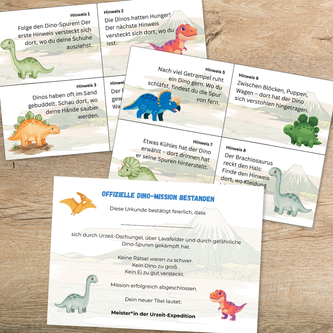 Mit zwei Altersversionen, detaillierter Anleitung, Bonus-Labyrinth, Dino-Spuren und Urkunde – perfekt für Kindergeburtstag oder Zuhause.